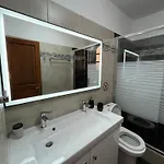 Les salles de bains de Villa Melissi Blue 1 comprennent également une douche à l'italienne et une toilette séparée. Un sèche-cheveux et des serviettes font également partie des articles de toilette.